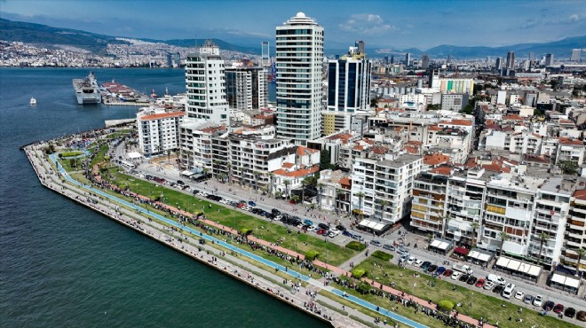 Hafta sonu havanın güzel olmasını fırsat bilen çok sayıda kişinin TCG Anadolu için oluşturduğu kuyruk, İzmir Limanı yolcu iskelesi önünden Gündoğdu Meydanı'na kadar uzanıyor.