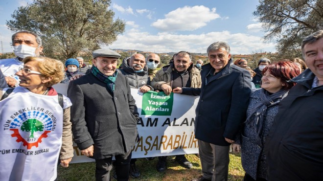Başkan Tunç Soyer konuşmasında belediye başkanları olarak asli görevlerinin doğaya sahip çıkmak olduğunu söyledi. Soyer, “Biz aslında zeytin ağaçlarının sahibi değiliz onlar bize sahip. Binlerce yıldır bu coğrafyada onlar vardı. Biz hepimiz geçip gideceğiz bu topraklardan ama zeytin ağaçlarımız kalmaya devam edecek. Biz zeytin ağaçlarımızı korumak, onlara sahip çıkmak zorundayız. Şunu da biliyoruz ki doğaya sahip çıkmak hayata sahip çıkmaktır. Bu aynı zamanda cesaret gerektirir. Bugün İstiklal Marşı'mızın kabulünün 101. yılı. Bu marş, Kurtuluş Savaşı destanının yaşandığı günlerde ortaya çıkmıştır. Dönemin acılarını, umutlarını içinde taşır ve 'korkma!' diye başlar. Korkmuyoruz! Hiçbirimiz korkmuyoruz. Hayatı savunmaya, doğayı savunmaya devam edeceğiz. Bugün dünyada yaşanan bu büyük savaş, hayatı savunmayanların ödediği bedeldir. Biz savunmaya, doğamızı korumaya, zeytinimize sahip çıkmaya devam edeceğiz. Tek yapmamız gereken birbirimize sahip çıkmak, uyum içinde mücadele etmektir. Çok yakınız. Doğadan yana, hayattan yana bir iktidarı kurmaya ilk defa bu kadar çok yakınız” dedi.