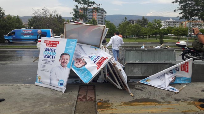 AK Parti Genel Başkan Yardımcısı ve İzmir Milletvekili Hamza Dağ, yeniden milletvekili adayı olduğu ikinci bölgedeki seçim afişlerinin ittifak yaptıkları MHP'li adaylarınki ile birlikte yırtılarak çöpe atıldığını söyledi. Dağ, bunun İzmir Büyükşehir Belediye Başkanı Aziz Kocaoğlu'nun baskı siyasetinden kaynaklandığını öne sürerek, "Bu siyasete prim vermeyeceğiz. Yıksalar da atsalar da yenilerini yerine koyacağız" dedi.