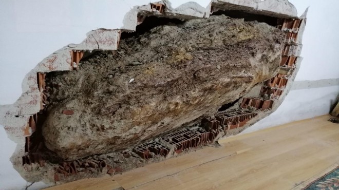 Olay, akşam saatlerinde Tire ilçesine bağlı Çayırlı Mahallesi'ndeki Kayhan ailesinin yaşadığı evde meydana geldi. Hafta başından bu yana etkili olan yağmurun toprağı yumuşatması sonucu, dağlık alandan kopan kaya parçası, Kayhan ailesinin yaşadığı evin duvarını delerek yatak odasına girdi. Bu sırada evde bulunan aile deprem olduğunu zannederken, gördükleri manzara karşısında şok oldu. Yaralananın olmadığı olayda, evde maddi hasar meydana geldi.