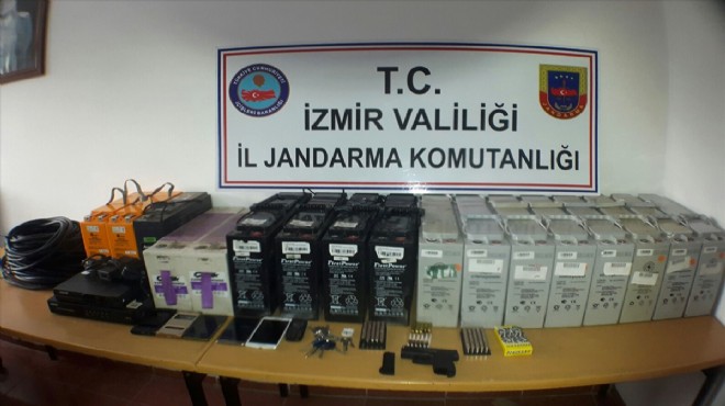 İzmir'de baz istasyonlarından çalındığı belirlenen 17 akü ele geçirildi.