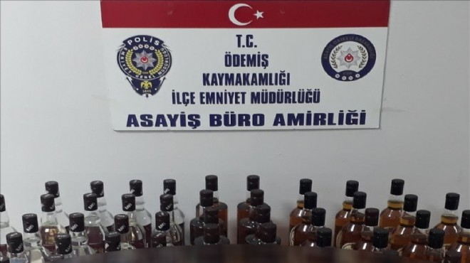 İzmir'in Ödemiş ilçesinde şüphe üzerine durdurulan araçta 69 şişe kaçak kaçak içki ele geçirildi, bir kişi gözaltına alındı.