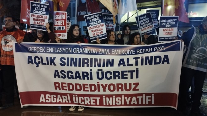 Asgari Ücret Tespit Komisyonu’nun 2026 yılı için asgari ücreti yüzde 27 artışla 28 bin 75 lira olarak belirlemesine tepki gösteren Asgari Ücret İnisiyatifi, İzmir’in Konak ilçesinde basın açıklaması yaptı. ÖSYM binası önünden yürüyüşe geçen inisiyatif üyeleri, Türkan Saylan Kültür Merkezi önünde basın açıklaması gerçekleştirdi.