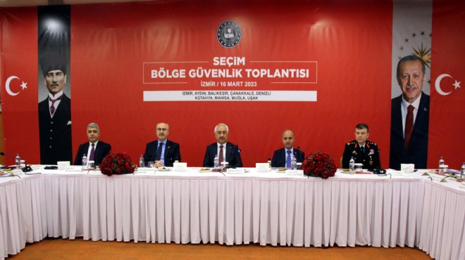 İçişleri Bakan Yardımcısı Mehmet Ersoy'un başkanlığında, 14 Mayıs Cumhurbaşkanlığı ve Milletvekilleri Genel Seçimleri için İzmir'de seçim bölge güvenliği toplantısı yapıldı. Seçim öncesi, günü ve sonrası alınacak tedbirlerin konuşulduğu toplantıya; Emniyet Genel Müdürü Mehmet Aktaş, İller İdaresi Genel Müdürü Selçuk Aslan, Jandarma Genel Komutanlığı Asayiş Başkanı Tümgeneral Ferdi Korkmaz, İzmir, Aydın, Balıkesir, Çanakkale, Denizli, Kütahya, Manisa, Muğla ve Uşak valileri ile 9 ilin kolluk kuvvet amirleri katıldı.