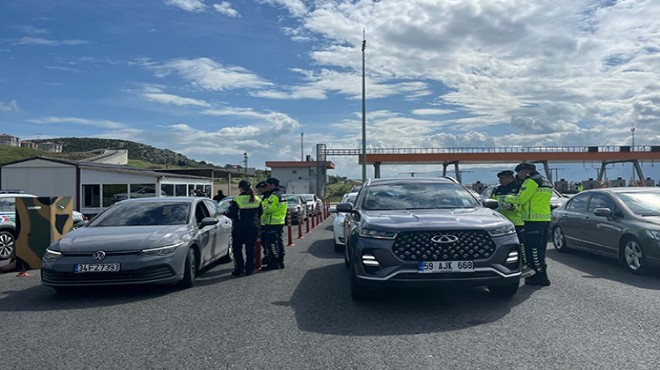 Ramazan Bayramı'nın ilk günü otoyol jandarma ekipleri İzmir'de trafik denetimlerini arttırdı. Kemalpaşa ilçesindeki Akalan Gişeleri'nde uygulama yapan İzmir İl Jandarma Komutanlığı ekipleri, durdurulan araçlardaki vatandaşlar ile bayramlaştı. Ekipler, sürücülere çikolata ve kolonya ikram etti. Bayramda otoyol jandarması, trafik ekipleri ve asayiş ekipleri olmak üzere toplamda 216 ekip 693 personel görev aldı. Ekipler, trafik kazalarının en aza indirilmesi, can ve mal kaybının önlenmesi amacı ile uyarılarda bulundu. (DHA)
