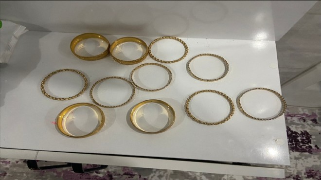 A.Y'nin Manisa'nın Turgutlu ilçesindeki evinde yapılan aramada 19 bin 500 lira, 1 ruhsatsız tabanca, 23 tabanca mermisi, 45 altın görünümlü materyal, 11 sahte bilezik, 5 adet 22 ayar bilezik ele geçirildi.