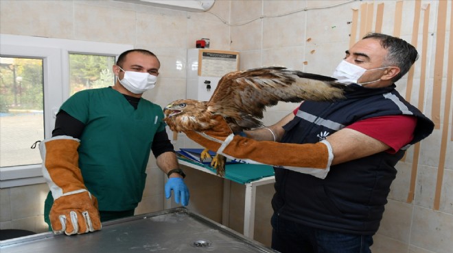 Karabağlar Belediyesi veterinerleri tarafından kontrol altında tutulan kuşun Doğa Koruma ve Milli Parklar Şube Müdürlüğüne teslim edileceği bildirildi.
