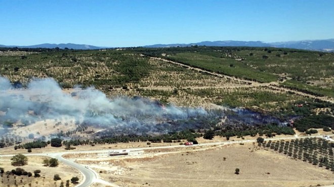 Aliağa ilçesine bağlı Yenişakran Mahallesi ile Bergama ilçesine bağlı Kaşıkçı Mahallesi arasındaki tarım arazisinde yangın çıktı.