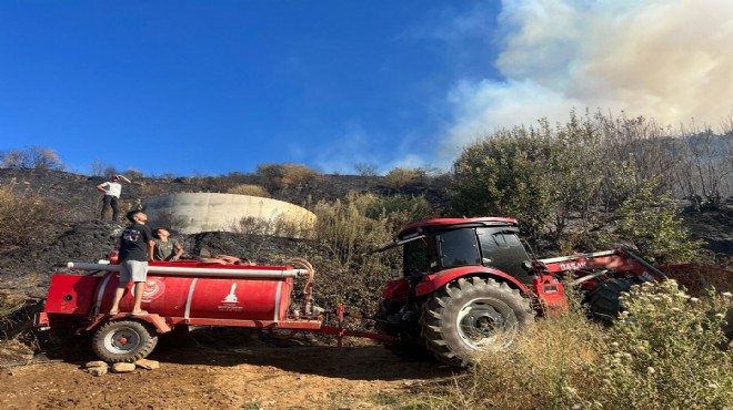 Ödemiş'in Pirinççi Mahallesi Güzdere mevkisinde, saat 15.00 sıralarında orman yangını çıktı. Çıkış nedeni henüz belirlenemeyen yangına, İzmir Orman Bölge Müdürlüğü'ne ait 3 uçak, 1 helikopter, 2 arazöz ve 1 su tankeri, İzmir Büyükşehir Belediyesi itfaiye ekipleri sevk edildi. Alevlere havadan ve karadan müdahale sürüyor. (DHA)
