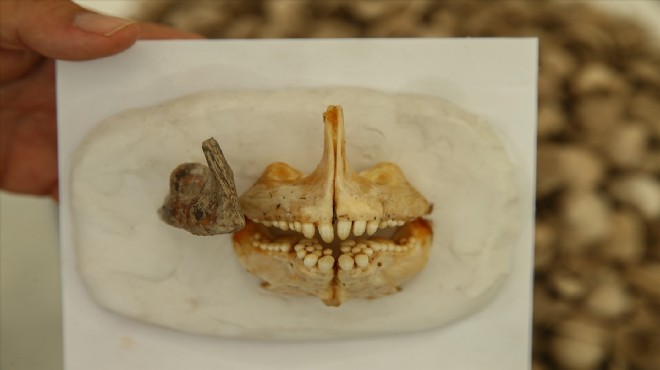 Höyükteki kazılarda bölgenin mutfak kültürüne ilişkin bazı yeni buluntular elde ettiklerini kaydeden Derin, bunlardan birinin de 3-5 kilogram ağırlığında olduğu tahmin edilen 8 bin yıl öncesine ait bir çipuranın çene kemiği olduğunu söyledi.