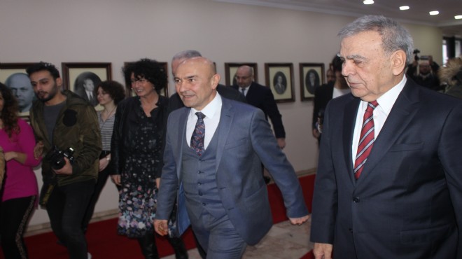 CHP'nin İzmir Büyükşehir Belediye Başkan Adayı Tunç Soyer, İzmir Büyükşehir Belediye Başkanı Aziz Kocaoğlu'nu makamında ziyaret etti.