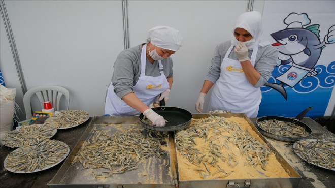 Balçova-İnciraltı rekreasyon alanında gerçekleştirilen şenlikte, Karadeniz'den getirilen 10 ton hamsi, kurulan ocaklarda 65 görevli tarafından pişirildi.