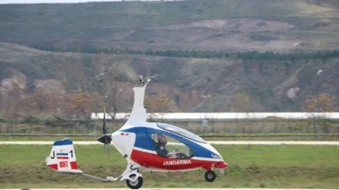 İzmir'de jandarma ekiplerinin trafik denetimlerine pervaneli bir hava taşıtı olan cayrocopter ekibi de katıldı.