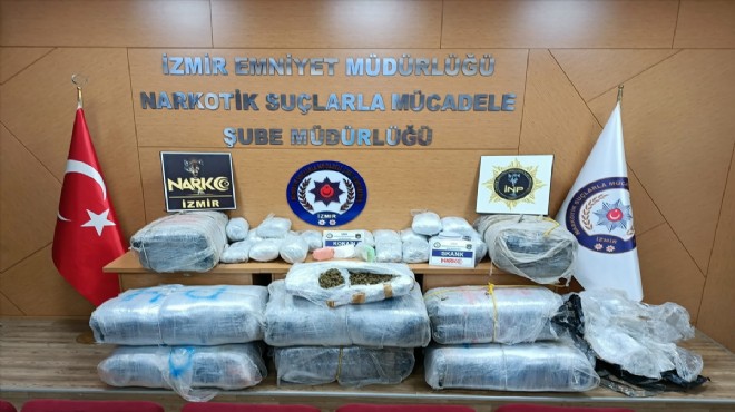 İzmir'de sokak satıcılarının kullandığı bir çiftliğe düzenlenen operasyonda 220 kilogram skunk esrar ve 1 kilo 548 gram kokain ele geçirildi, 5 şüpheli gözaltına alındı.