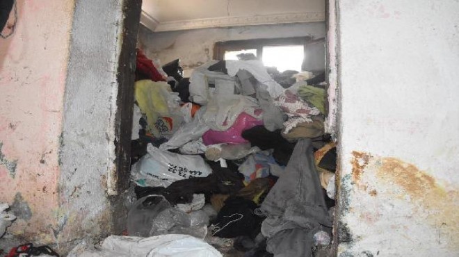 İZMİR - Piri Reis Mahallesi 285 sokakta bulunan ve 3'ü de psikolojik tedavi gören Yahya Özdemir (65), Gazali Özdemir (61) ve Suphi Özdemir (58) kardeşlerin 1990 yılından bu yana kaldığı, ağabeyleri Mehmet Özdemir'e ait, 5 katlı Sevil Apartmanı'nın zemin katından çıkan çöpler görenleri şaşırttı.