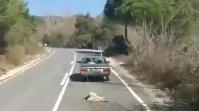 Olay, Bergama ilçesi Kozak Yaylası yolu üzerinde meydana geldi. Kimliği belirsiz sürücü ve yanında bulunan arkadaşı, köpeği boğazından 35 KDC 14 plakalı otomobilin arka tamponuna bağlayıp, yolda kilometrelerce sürükledi.
