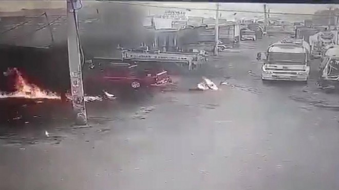 Bu arada, olay anı saniye saniye çevredeki bir işyerinin güvenlik kamerasına yansıdı. (DHA)