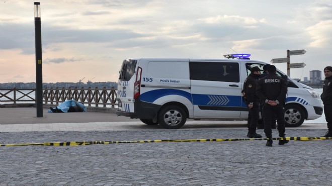 Bayraklı Sahili’nde bugün saat 17.00 sıralarında yürüyüş yapan vatandaşlar, deniz yüzeyinde hareketsiz duran birini görünce polisi aradı. İhbar üzerine olay yerine gelen Deniz Polisi, bir erkeğe ait olduğu belirlenen cesedi, bota alıp iskeleye çıkardı.