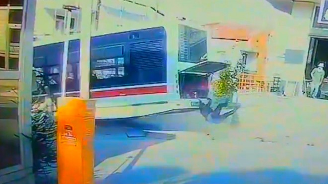 VİDEO: BİR ANDA HAREKET EDEN OTOBÜSÜ TUTARAK DURDURMAYA ÇALIŞTI...