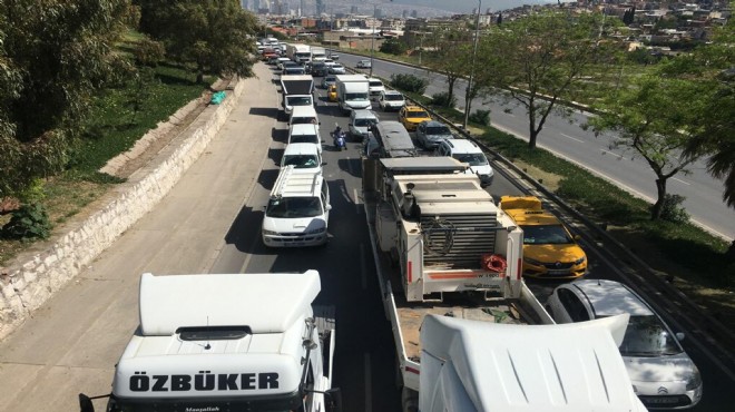 İzmir'de, tam kapanmanın ilk gününde yapılan trafik denetiminde uzun araç kuyruğu oluştu.