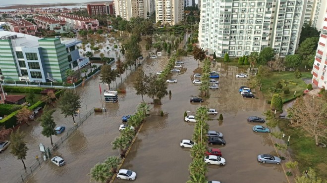 İzmir'in Karşıyaka ilçesinde yağmurun ardından denizin taşması sonucu çok sayıda araç su içerisinde kalırken, vatandaşlar araçlarını kurtarmak için çaba harcadı.