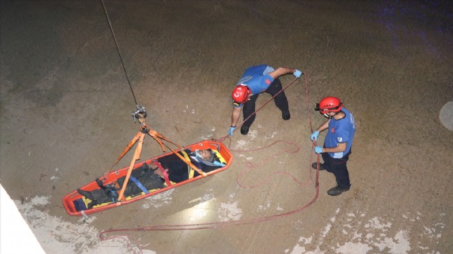 İzmir'in Konak ilçesinde dereye düşen yaşlı adam, itfaiye ekiplerince kurtarılarak hastanede tedavi altına alındı.