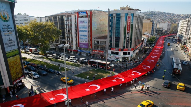 Basmane Karakolu’nun önünden yola çıkan 350 metrelik Türk bayrağı kortej eşliğinde Kültürpark Lozan Kapısı'na kadar taşındı.
