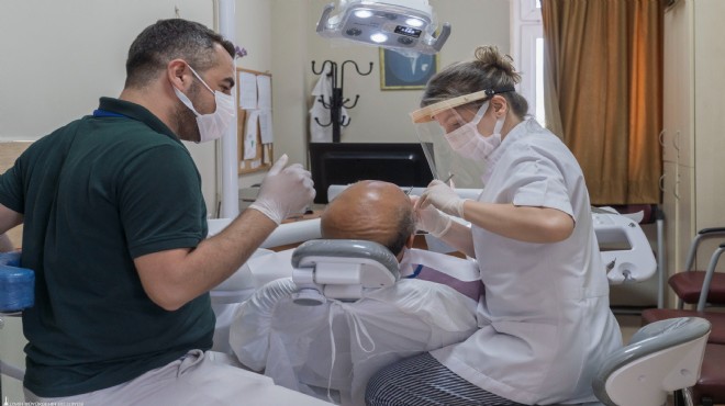 Diş polikliniklerinde randevu bulma zorluğu yaşayan İzmirli yurttaşlar, İzmir Büyükşehir Belediyesi Eşrefpaşa Hastanesi’ne bağlı diş polikliniklerinde tedavi imkânına kavuşuyor. Cuma günleri öğleden sonra https://hstsira.izmir.bel.tr/ adresi üzerinden kolaylıkla randevu oluşturabilen hastalar, hem İzmir Büyükşehir Belediyesi Eşrefpaşa Hastanesi Dt. Buse Demir Diş Polikliniğinden hem de hastanenin Buca ve Karşıyaka ilçelerinde bulunan diş polikliniklerinden diş tedavisi hizmeti alabiliyor. Eşrefpaşa Hastanesi’nde görevli Diş Hekimi Eda Karakoç, evde bakım hizmetleri kapsamında haftada bir gün ev ziyaretleri de gerçekleştiriyor. Hastanın ağız bakımını evinde gerçekleştiren diş hekimi, gerekli durumda hastanın ambulansla hastaneye sevkini sağlayarak diş tedavisinde bulunuyor. Hastanede, anestezi gereksinimi olan engelli hastalar için de diş tedavisi hizmeti sunuluyor.