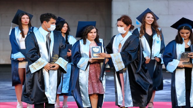 İzmir'de doğuştan görme engelli 23 yaşındaki Esra Çetiner, Yaşar Üniversitesi Psikoloji Bölümü'nden üçüncülükle mezun oldu.