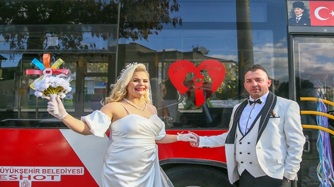 Çift, düğün aracı olarak ise Yeliz Önemli'nin görev yaptığı belediye otobüsünü seçti. Balonlar ve kurdelelerle süslenen otobüs, gelinin Bayraklı ilçesi Osmangazi Mahallesi'ndeki evinin önüne geldi. Gelin alma merasiminde çift, bando eşliğinde halay çekerek oyunlar oynadı.