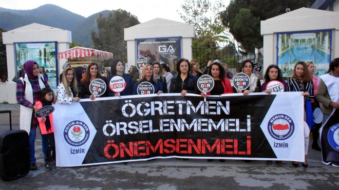 Eğitim-Bir-Sen ve Memur Sen üyesi yaklaşık 40 kişi, eğitimde yaşanan şiddet olaylarını protesto etmek ve caydırıcı düzenlemeler getirilmesini talep etmek amacıyla Balçova'daki özel bir otelin önünde bir araya geldi. Ellerinde, 'Eğitimciye şiddete dur de' yazılı dövizler tutan öğretmenler, 'Öğretmene uzanan eller kırılsın' sloganı attı. Eğitim-Bir-Sen Kadın Komisyonu Genel Başkanı Sıdıka Aydın, terör saldırıları ve öğrenci şiddetiyle hayatını kaybeden ya da yaralanan Şenay Aybüke Yalçın, Necmettin Yılmaz, Ayhan Kökmen, Yücel Düzci ve Necmeddin Kuyucu gibi eğitimcileri andığı basın açıklamasında, "Aslında bizim kaybettiğimiz sevgimiz, saygımız, merhametimiz, şefkatimiz, vicdanımız ve izanımızdır. Son iki yılın fotoğrafı bile şiddet olaylarının nasıl giderek tırmandığını ve yalananların ne kadar vahim olduğunu göstermektedir" dedi.
