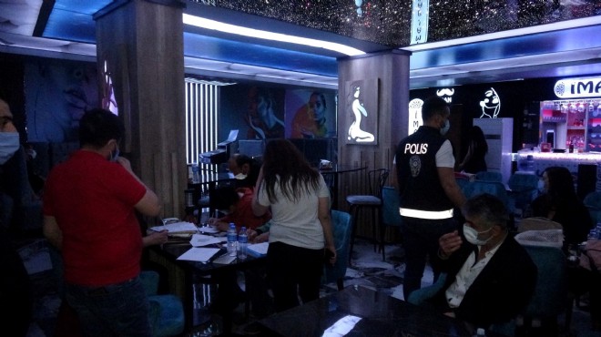 İzmir İl Emniyet Müdürlüğü Asayiş Şube Müdürlüğü Ahlak Büro Amirliği ekipleri, dün saat 23.00 sıralarında Gümüşpala Mahallesi 7020 Sokak üzerinde koronavirüs tedbirleri kapsamında kapalı olması gereken eğlence mekanının açık olduğunu ve içeride müşterilerin bulunduğunu tespit etti. Mekana baskın yapan polis ekipleri, hem sokağa çıkma kısıtlamasını ihlal eden hem de sosyal mesafe kurallarına uymayan kişilere işlem yaptı. Baskında yakalananlar görüntülenmemek için yüzlerini kapatarak, masaların altına saklandı. Ekipler 29 kişiye sokağa çıkma kısıtlamasını ihlal ve sosyal mesafe kuralına uymamaktan 182 bin 700 lira ceza kesildi.