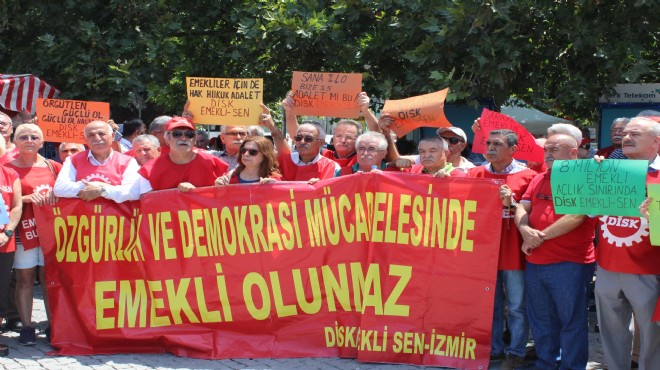 Konak ilçesindeki tarihi Kemeraltı Çarşısı girişinde bir araya gelen DİSK’e bağlı Emekli-Sen üyeleri, temel gıda ve tüketim mallarına yapılan zamların geri çekilmesini talep ederek, son enflasyon verilerine bağlı olarak yapılan emekli maaşı zamlarının yüzde 5 olmasını protesto etti. Emekli aylıklarının 2 bin 500 TL'nin altında olmamasını isteyen Emekli- Sen üyeleri, emeklilerin ücretlerinin sadece enflasyon değil milli gelir artışı da göz önüne alınarak belirlenmesini istediklerini belirtti. Emekli-Sen üyelerinden 50 kişinin bulunduğu grup 'Sana yüzde 40, bize yüzde 5 adalet mi bu?', 'Demokrasi mücadelesinden emekli olunmaz', 'Yüzde 5 zammı yüzde 10 ile geri aldılar', '80 milyon emekli açlık sınırında' yazılı pankartlar taşıdı.
