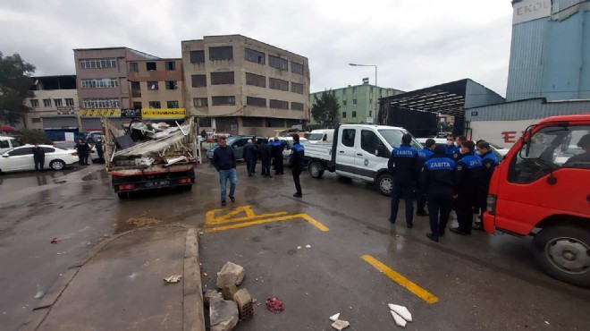 Olay, bugün saat 11.30 sıralarında Karabağlar Sanayi Sitesi'nde meydana geldi. Karabağlar Belediyesi'ne bağlı zabıta ekipleri, şikayet üzerine sanayi sitesi içerisinde, minibüslerden gıda ürünü satan kişilere yönelik denetim düzenledi. Ekiplerin, minibüslerin önüne konulan tenteler, masa ve sandalyeleri aldığı sırada sanayi sitesindeki esnaf duruma müdahale etmek istedi. Bu sırada, zabıta ekipleri ile site esnafı arasında kavga çıktı.