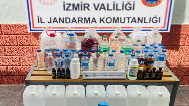 Menderes ilçesi Fevzi Çakmak Caddesi'nde bulunan bir ev ve karavan ile Bornova ilçesi Egemenlik Mahallesi'nde bir depo ve araçta yapılan aramalarda, 8 ton 223 litre etil alkol, alkol yapımında kullanılan aroma verici 10 kimyasal madde ve alkol ölçüm cihazı ele geçirildi.