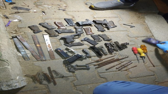 İzmir'in Ödemiş ilçesinde polis ekipleri, kaçak silah üretildiği belirlenen eve düzenledikleri operasyonda bir kişiyi gözaltına aldı.