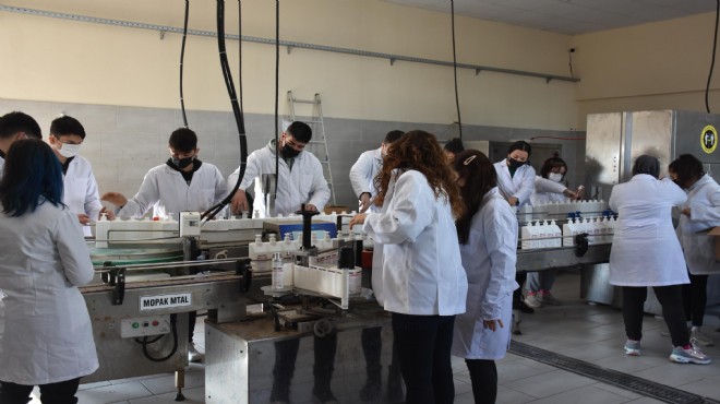 "Öğrencilerimizle birlikte sıvı olmak koşuluyla temizlik malzemelerinin hepsini üretiyoruz" diyen Kimya Teknolojisi Alan Şefi Ufuk Akış da, "Cam-silden, lavabo temizleyiciye, el dezenfektanından kir çözücüye kadar pek çok malzemeyi üretiyoruz. Kimya bölümündeki hemen hemen her öğrencimiz çalıştı. Kendileri de harçlık kazandılar. Bu tablo bizim için gurur verici. İyi bir ciroyla yılımızı tamamladık. Şimdi yeni yıldaki hedefimiz bu ciroyu daha yukarıya taşımak. Öğrencilerimizin dersinin olmadığı anlar çalışıyoruz. Burada üretilen ürünler devlet kurumlarımıza gönderiliyor. Pandemi dolayısıyla temizlik ürünlerine olan talep çoğaldı. Mezun olan her çocuğumuz buradan işi öğrenerek mezun oluyor. Mezunlarımızdan birçok öğrencimiz buradaki formülleri kullanarak, izinlerini alarak bu işi yapmayı devam ettirdiler" ifadelerini kullandı.