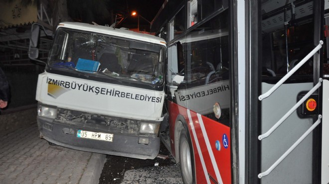 Alınan bilgiye göre, Mustafa Altuntaş yönetimindeki İzmir Büyükşehir Belediyesine ait 35 HPM 89 plakalı kamyonet, 467'nci Sokak'taki durakta yolcu indirmek için duran 35 HD 3688 plakalı belediye otobüsüne çarptı.