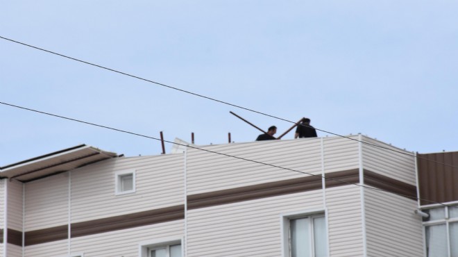 Olay, öğle saatlerinde, İzkent Mahallesi 1603 Sokak'ta meydana geldi. Şiddetli rüzgar nedeniyle 5 katlı apartmanın tentesi uçtu. Çatı ters dönerken, kopan parçalar da sokağa düştü. Gürültüyü duyup, pencereye çıkan mahalle sakinleri, çatının bir bölümünün ters döndüğünü görünce büyük şaşkınlık yaşadı. Çatıdan kopan parçaların düştüğü sırada sokakta kimsenin olmaması, olası can kaybı ya da yaralanmanın önüne geçti. Olayın meydana geldiği apartmanın sakinleri ise çatının kısa süre önce yapıldığını öne sürerek, mağdur olduklarını belirtti.