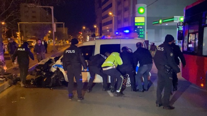 Kaza, saat 06.00 sıralarında Oğuzlar Mahallesi, Gaziler Caddesi'nde meydana geldi. İddiaya göre, Yenişehir Mahallesi'nden Basmane'ye giden polis memuru A.F.İ. idaresindeki polis otosu, kontrolden çıkınca refüjdeki ağaca çarptı. Kazayı görenlerin ihbarıyla bölgeye sağlık ve polis ekibi sevk edildi. Kazada yaralanan kadın polis memuru H.K. ile sürücü A.F.İ. meslektaşları tarafından araçtan çıkartıldı. H.K. başka bir polis otosu ile A.F.İ. de ambulansla hastaneye kaldırıldı. Sağlık Bilimleri Üniversitesi (SBÜ) Tepecik Eğitim ve Araştırma Hastanesi'nde tedavi altına alınan 2 polisin sağlık durumunun iyi olduğu belirtildi. Kazayla ilgili başlatılan soruşturma sürüyor. (DHA)