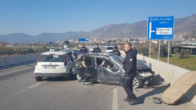 Kaza, saat 12.00 sıralarında, İzmir- Bayındır yolu Doğu kavşağında meydana geldi. İzmir'den Ödemiş yönüne giden Erdal Valın'ın kullandığı 35 ADR 484 plakalı otomobil, kontrolden çıkıp, refüjü aşarak, karşı yönden gelen Ecenur Yılmaz yönetimindeki 35 R 7620 plakalı otomobil ile çarpıştı. Kazada sürücü Erdal Valın ile otomobildeki eşi Gurbet, çocukları İremsu (5) Hümeyra Valın (10) ve baldızının kızı Nisanur Çap (9) ile diğer sürücü Ecenur Yılmaz ve aracındaki Ahmet ile Ebru Yılmaz yaralandı. Yaralılar, ihbarla gelen sağlık görevlilerince ambulanslarla İzmir Dokuz Eylül Üniversitesi ile Tire Devlet Hastanesi'ne kaldırıldı. Tedaviye alınan yaralılardan İremsu ile ablası Hümeyra Valın'ın sağlık durumunun ağır olduğu belirtildi. Polis, kazayla ilgili soruşturma başlattı. (DHA)