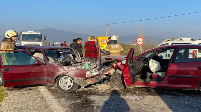 Tire-Bayındır kara yolunun Hüseyin Ağa Köprüsü mevkisinde Aydın A. (52) yönetimindeki 35 UE 564 plakalı otomobil ile karşı yönden gelen Sabri S'nin (30) kullandığı 35 YEZ 34 plakalı otomobil çarpıştı.