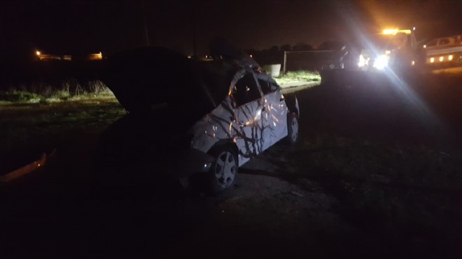 Alınan bilgiye göre, Göçbeyli, Bergama, Soma yol kavşağı yakınlarında Birol Duygun yönetimindeki 35 DB 5564 plakalı otomobil, yola çıkan köpek nedeniyle sürücüsünün direksiyon hakimiyetini kaybetmesi sonucu tarlaya düştü.