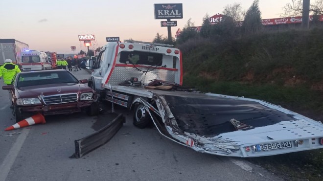 Emniyet şeridine aracını park eden sürücünün haber vermesi üzerine yardım için Recep Camcı idaresindeki 35 BSG 924 plakalı çekici bölgeye geldi.