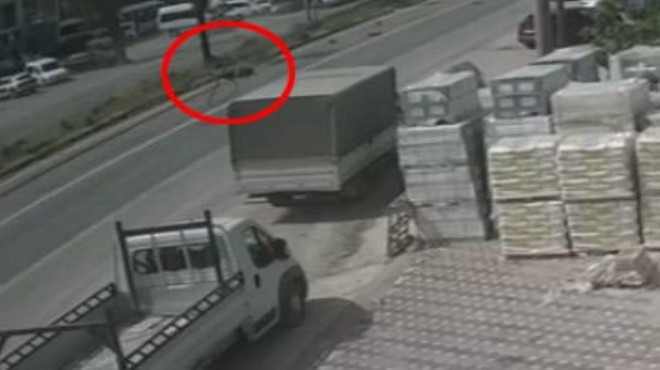 Kaza anı, bir iş yerinin güvenlik kamerasına anbean kaydedildi. Görüntülerde, yan yoldan ana yola giren motosiklete, karşı yöne gitmeye çalışarak sol şeride geçtiği sırada arkadan gelen kamyonetin çarptığı görüldü. (DHA)