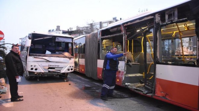 SaadettinTöngül (63) yönetimindeki 35 TIT 51 plakalı servis minibüsünün freni seyir halindeyken boşaldı. Minibüs, park halindeki 48 SN 046 ve 09 HP 667 plakalı 2 otomobile çarptıktan sonra, Uzundere- Üçyol metro hattında çalışan 35 EL 373 plakalı İzmir Büyükşehir Belediyesi'ne ait ESHOT otobüsüne çarparak durabildi.