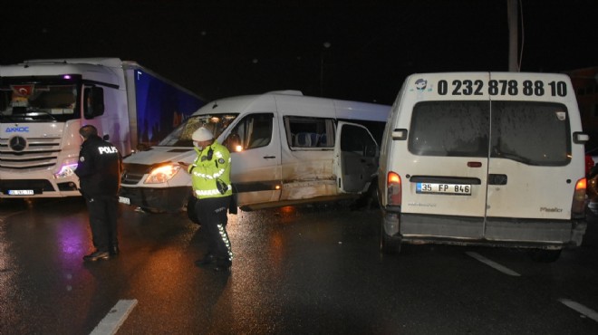İzmir'in Kemalpaşa ilçesinde, 2 servis minibüsünün çarpışması sonucu 3 kişi yaralandı.