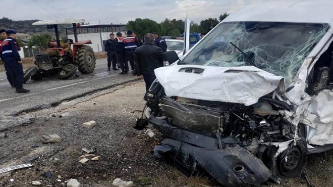 Kaza, saat 11.00 sıralarında Şaşal Mahallesi yakınlarında meydana geldi. Bir yemek firmasına ait minibüsle karşı yönden gelen traktör, henüz bilinmeyen nedenle çarpıştı.