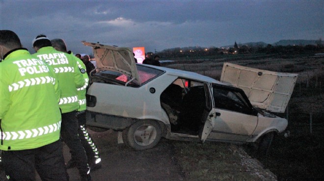 İZMİR - Ödemiş İzmir Karayolu Yeniköy Mahallesi yakınlarında, meydana gelen kazada, Ödemiş istikametinden İzmir İstikametine gitmekte olan Hasan Sakallı yönetimindeki 35-ZTJ-38 Plakalı otomobille, direksiyon hâkimiyetini kaybetmesi üzerine yol kenarında bulunan beton bariyerlere çarparak durabildi. Kaza sonrası yaralı sürücü Sakallı otomobille karayolu üzerinde 5 metrelik şarampole düşmekten şans eseri kurtuldu.