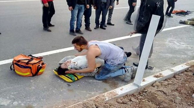 Kaza, dün saat 18.00 sıralarında, Kiraz- Ödemiş yolunda meydana geldi. Hasan Tığ (51) yönetimindeki 35 AB 4405 plakalı otomobil, karşı yönden gelen Hatice Sarı'nın kullandığı 34 HE 9082 otomobille çarpıştı. Kazada sürücü Hasan Tığ ile araçtaki eşi Hacer (56), oğlu Mehmet Emin, 6 aylık hamile olan gelini Aslı Tığ (25) ve yakını Abdullah Uysal (61) ile diğer sürücü Hatice Sarı yaralandı. Kazayı görenlerin ihbarıyla olay yerine, sağlık ve jandarma ekipleri sevk edildi. Mehmet Emin Tığ, hamile eşi Aslı Tığ'ın başından ayrılmadı. Sağlık ekipleri, 6 yaralıyı ambulanslarla çevredeki hastanelere kaldırdı. Tedaviye alınan yaralılardan Hasan Tığ ile eşi Hacer Tığ'ın hayati tehlikesinin olduğu öğrenildi. Jandarma, kazayla ilgili soruşturma başlattı.(DHA)
